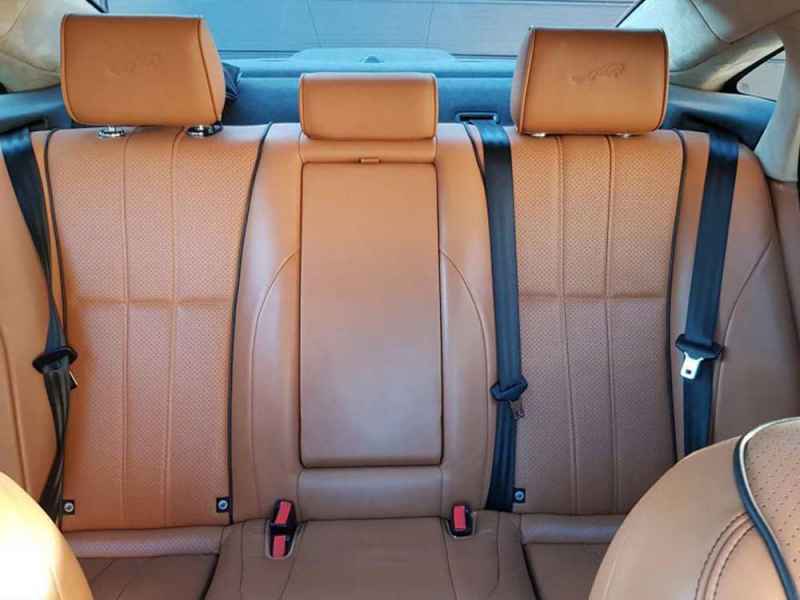 Samochód jest białego koloru. Posiada przestronne wnętrze o charakterystycznym kolorze w odcieniu Amber, a także skórzaną tapicerkę, przyciemniane szyby, wentylowane i podgrzewane fotele z masażem oraz panoramiczny dach. Auto wyposażone jest także w czterostrefową klimatyzację, miejsce na degustację lampki szampana i dostęp do WIFI.